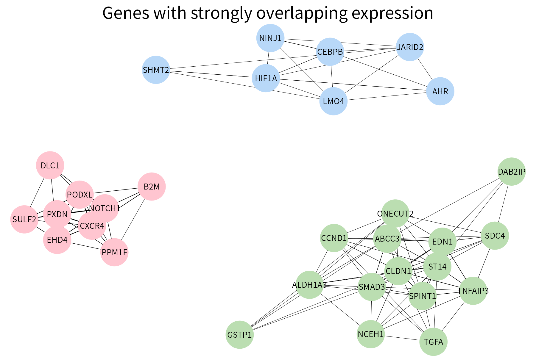 It can be used to showcase genes involved in a network. Just like networkPlot, radialPlot can distinguish genes belonging to different connected components: