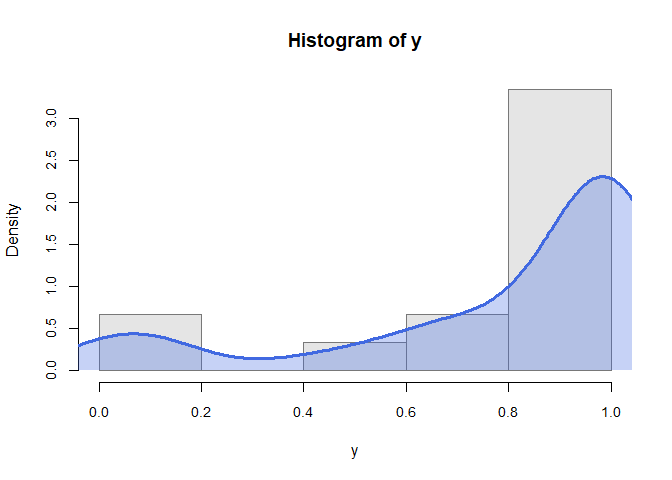 explore(y~X1+X2, CV = "CV", data = dataBeta, normality = TRUE)