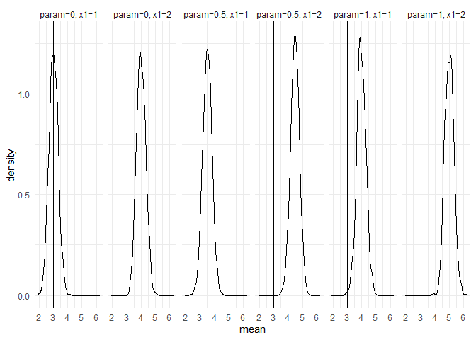 #>     data <- rnorm(n, mean = param) + x1 + x2