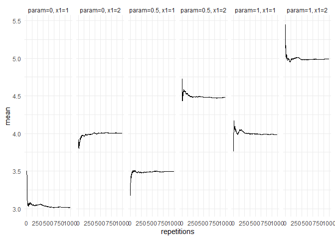 #> Running whole simulation: Overall 6 parameter combinations are simulated ...